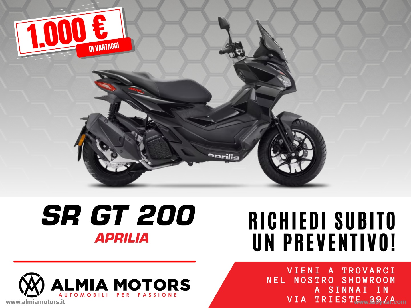 Vuoi provare l'emozione della strada con un mezzo all'avanguardia? Il nuovo SR GT 200 di APRILIA è finalmente disponibile da Almia Motors!